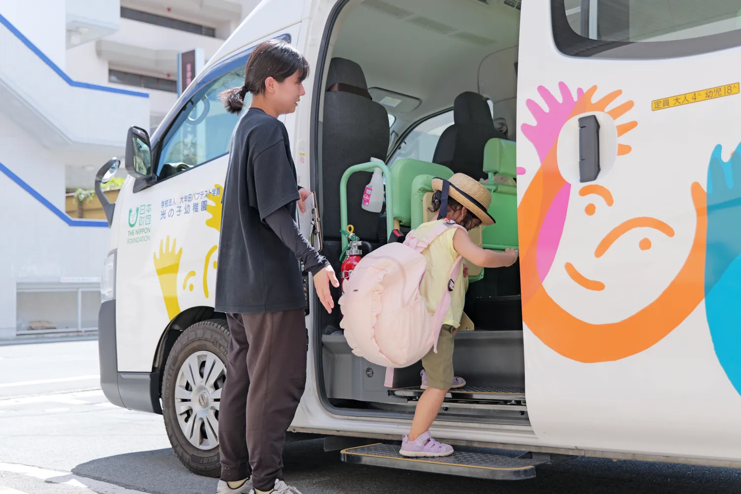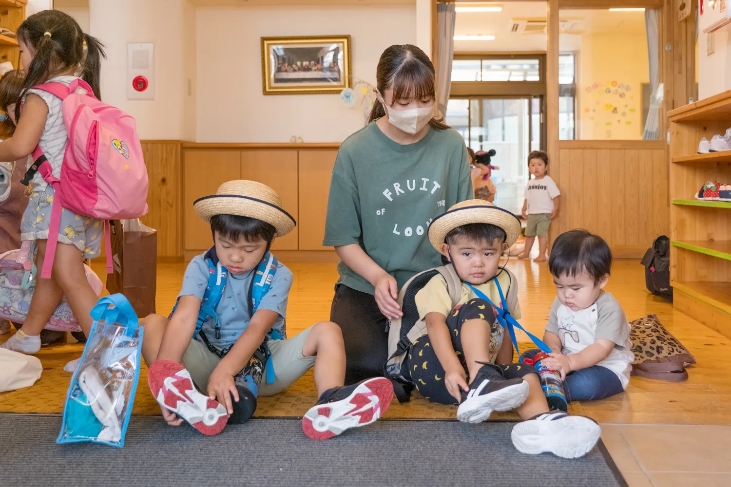 子どもたちが元気に登園し、先生やお友達にごあいさつします。