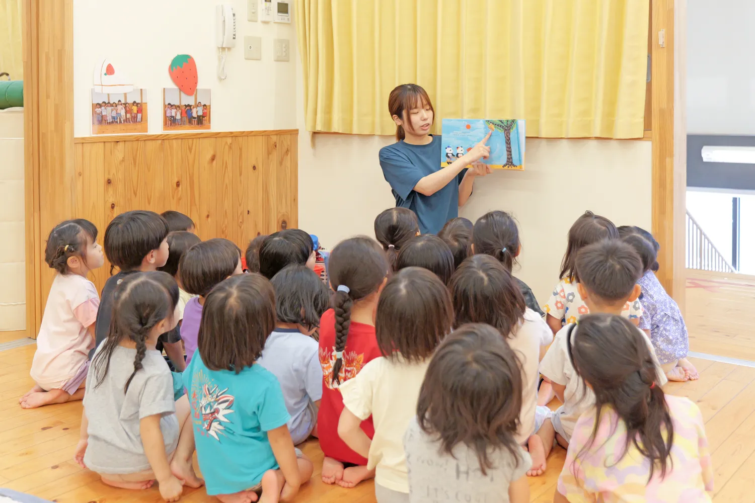 先生が選んだ絵本をみんなで静かに楽しみます。