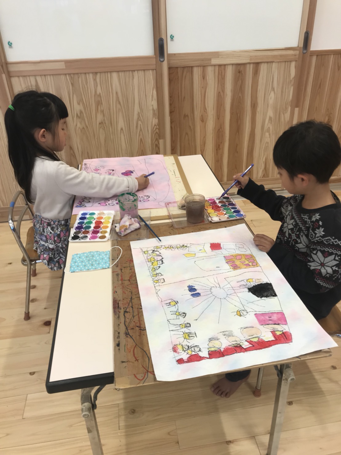 何を描かなければいけないという具体的な目的がなく、幼児の心の中にあるものを自由に描かせる自由画で、お子様の創造力を育んでいきます。